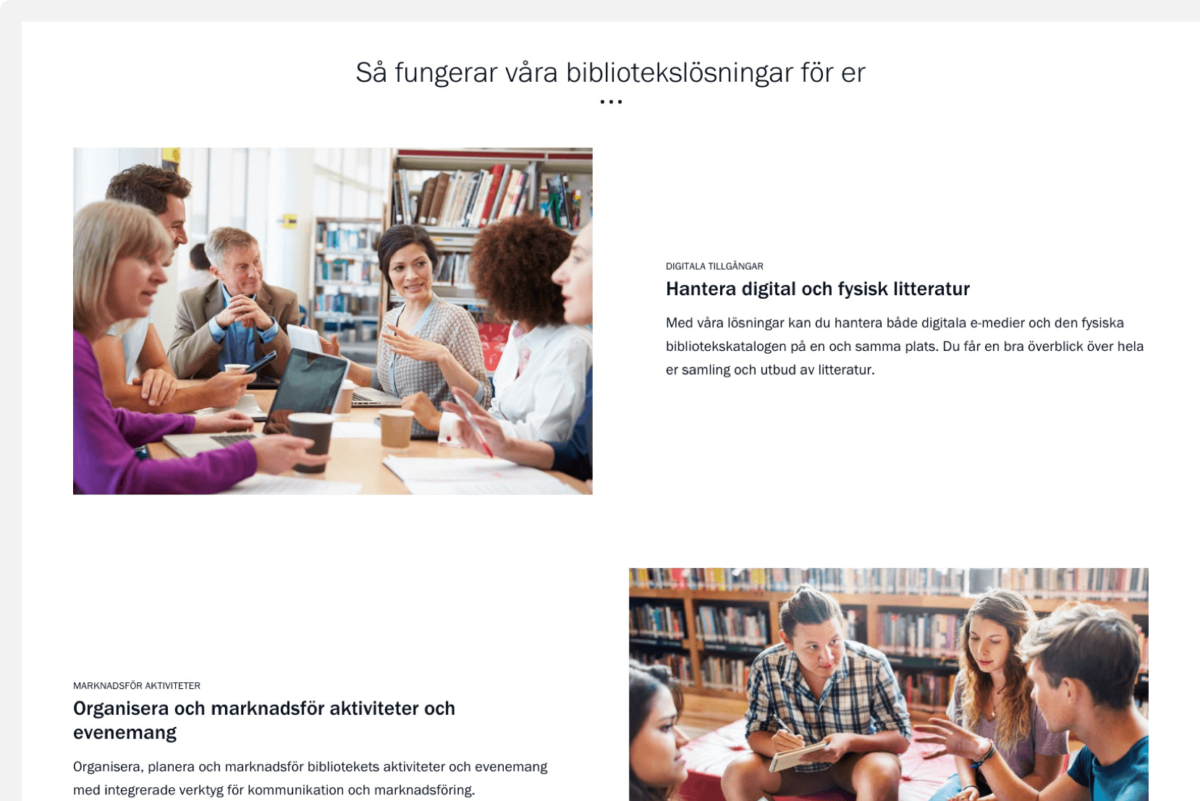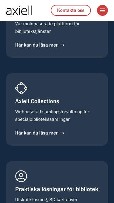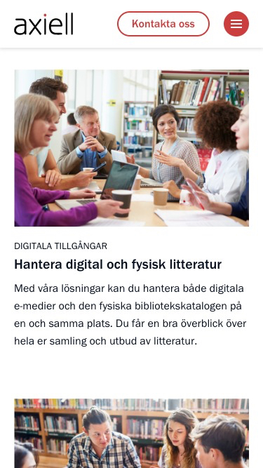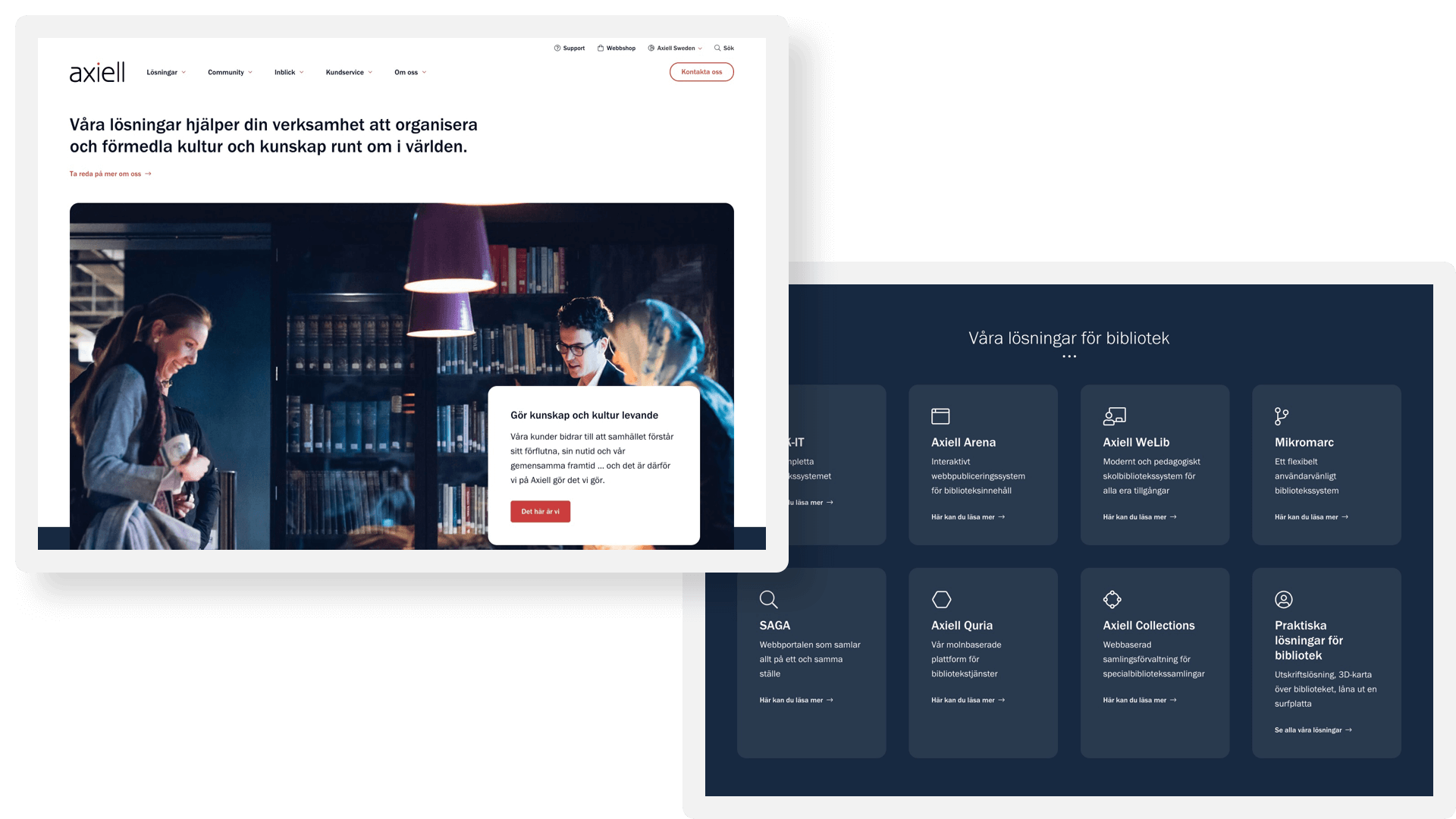 Axiell skapar innovativa, digitala verktyg och tjänster som hjälper institutioner som bibliotek, muséer och skolor att enkelt dela med sig av kunskap och kultur. Verksamheten finns i 55 länder och de har sitt huvudkontor i Sverige.