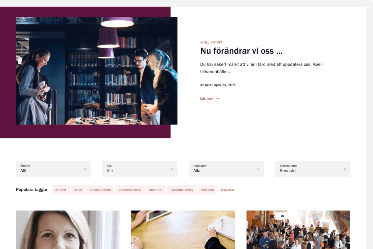 Som så många världsomspännande företag hade Axiell flera siter där allt från design till teknisk plattform skiftade. Det blev knöligt att administrera och gav en spretig bild av företaget. De lanserade därför själva projektet ”one Axiell” – ett projekt med målet att ta fram en gemensam webb där bolagets samtliga plattformar samlades under ett och samma tak.