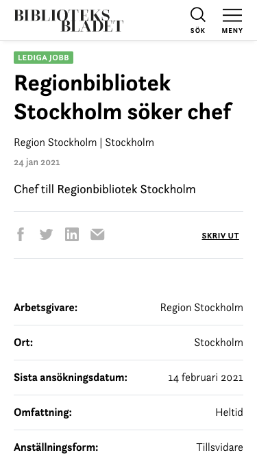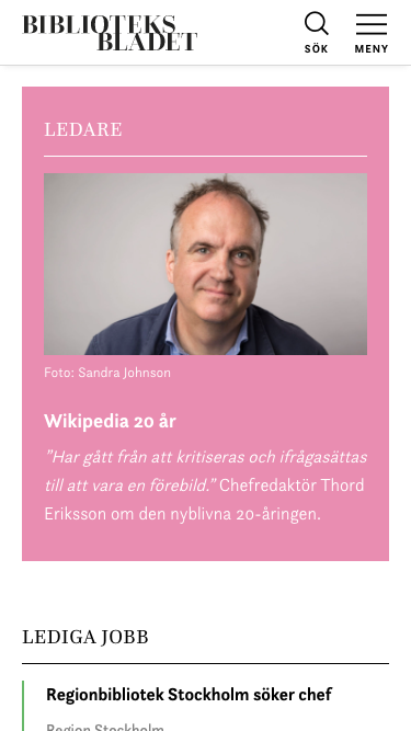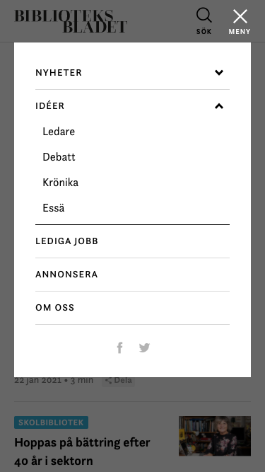 Vi jobbade nära kreatörer och redaktörer på A4 för att säkerställa att den digitala upplevelsen var i linje med tidningens. Vi analyserade hur andra digitala tidningar utformades och tog fram en tidsenlig och flexibel design med syfte att bättre lyfta Biblioteksbladets kärnverksamhet: att påverka och skapa debatt. Nyheterna fick därför en upplyft plats på startsidan.